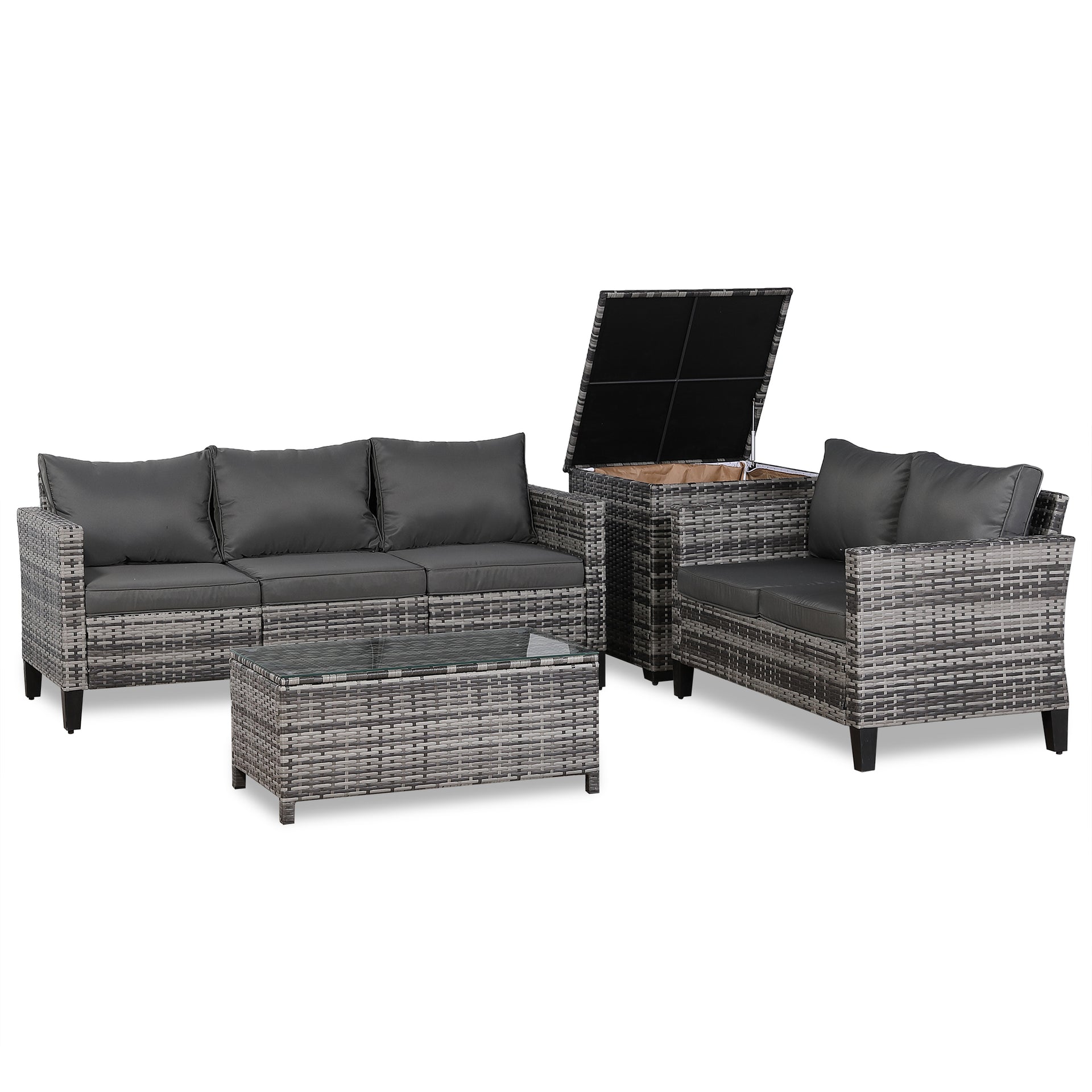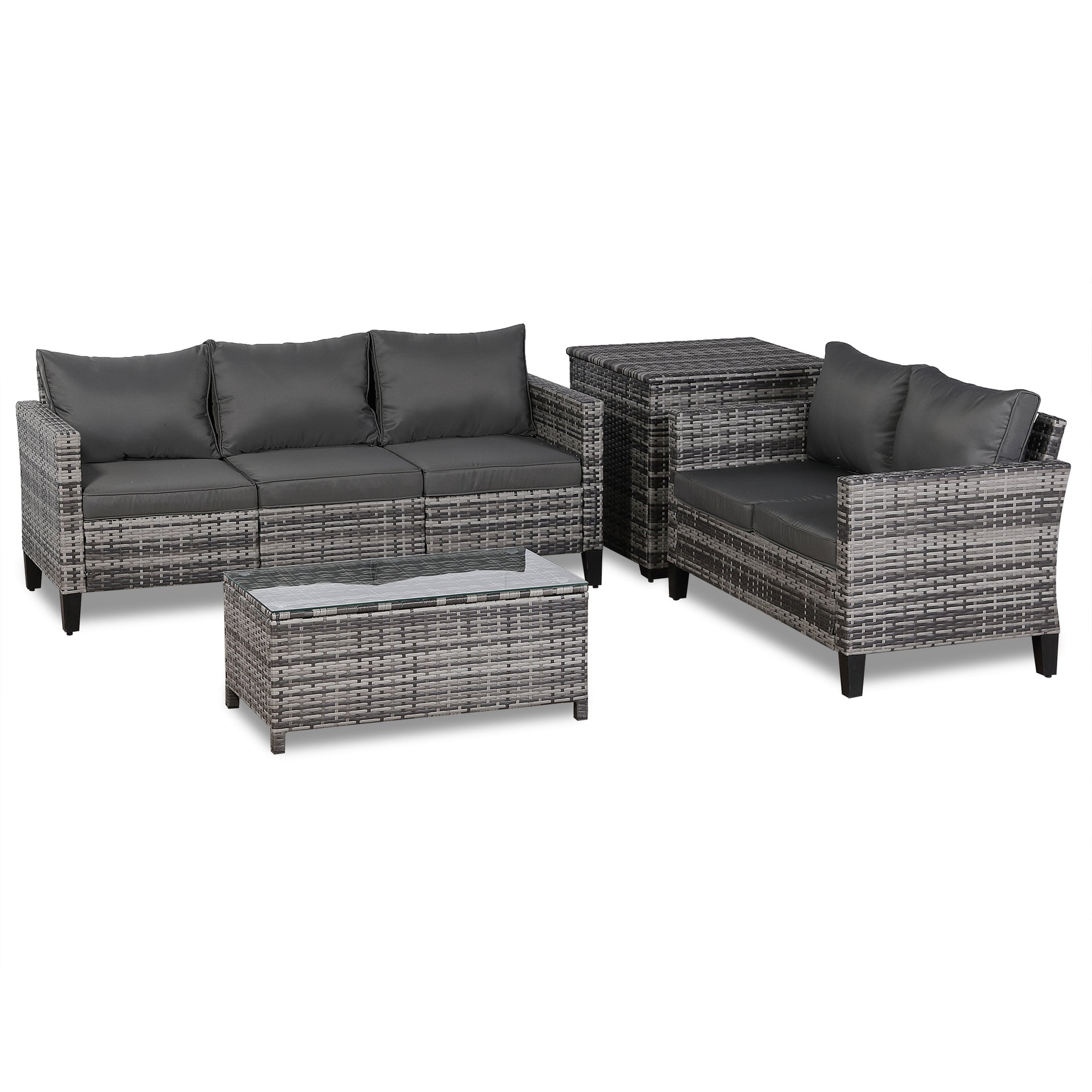 - Palma Range Corner Sofa Sets with Storage Box in Grey Rattan and Grey Cushions