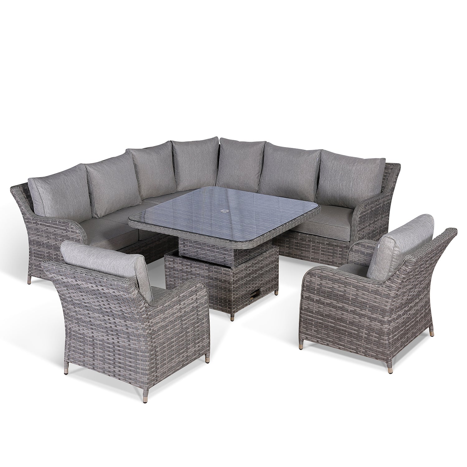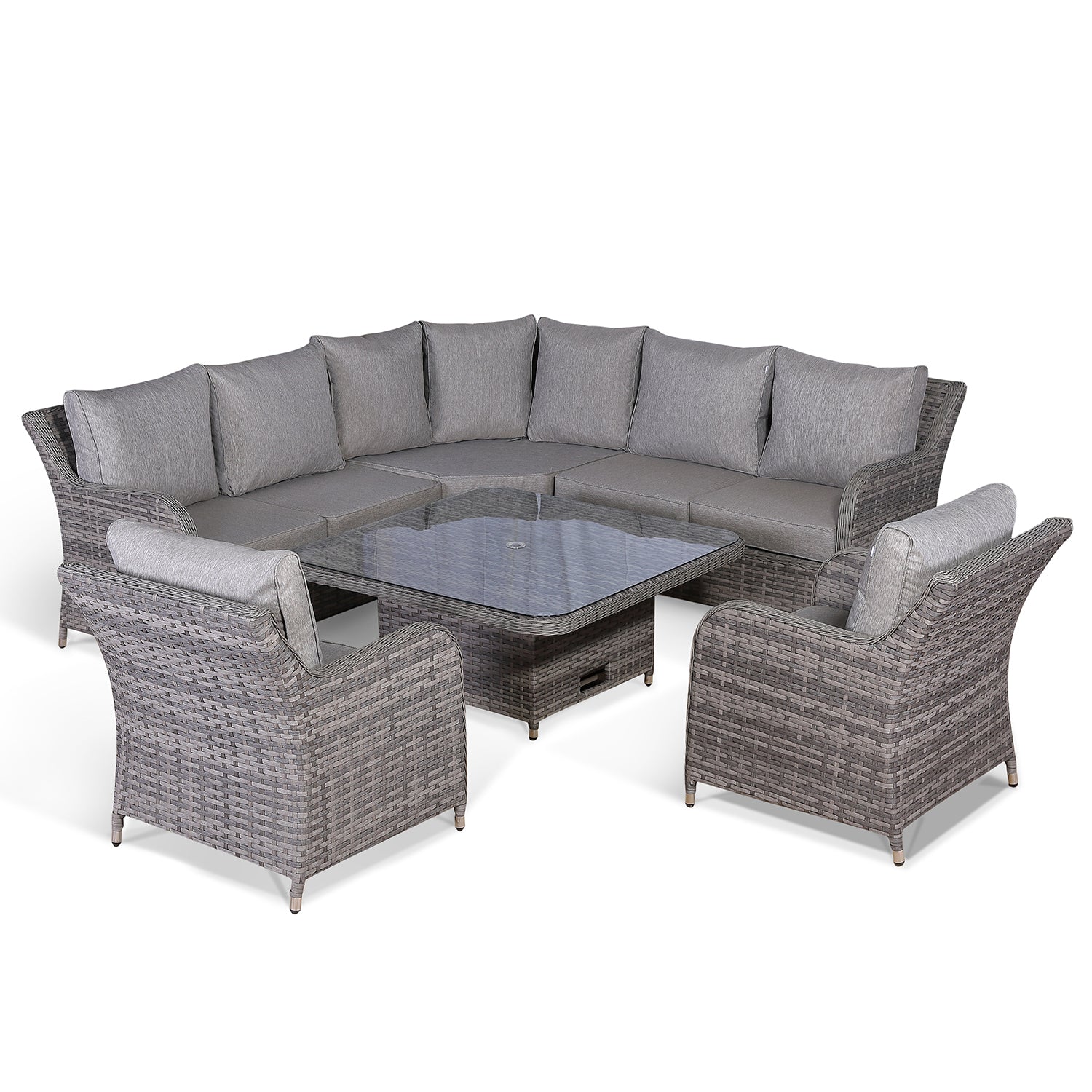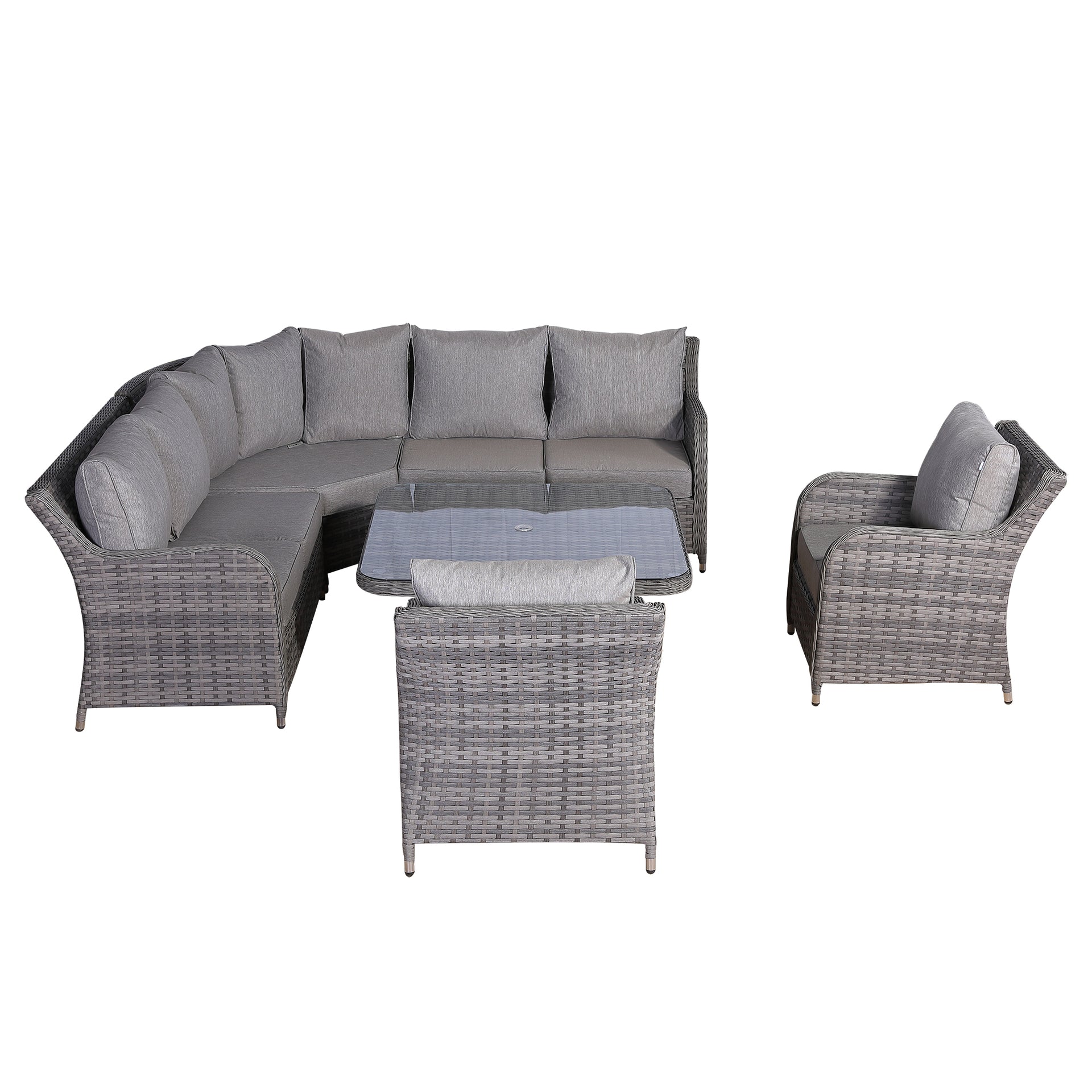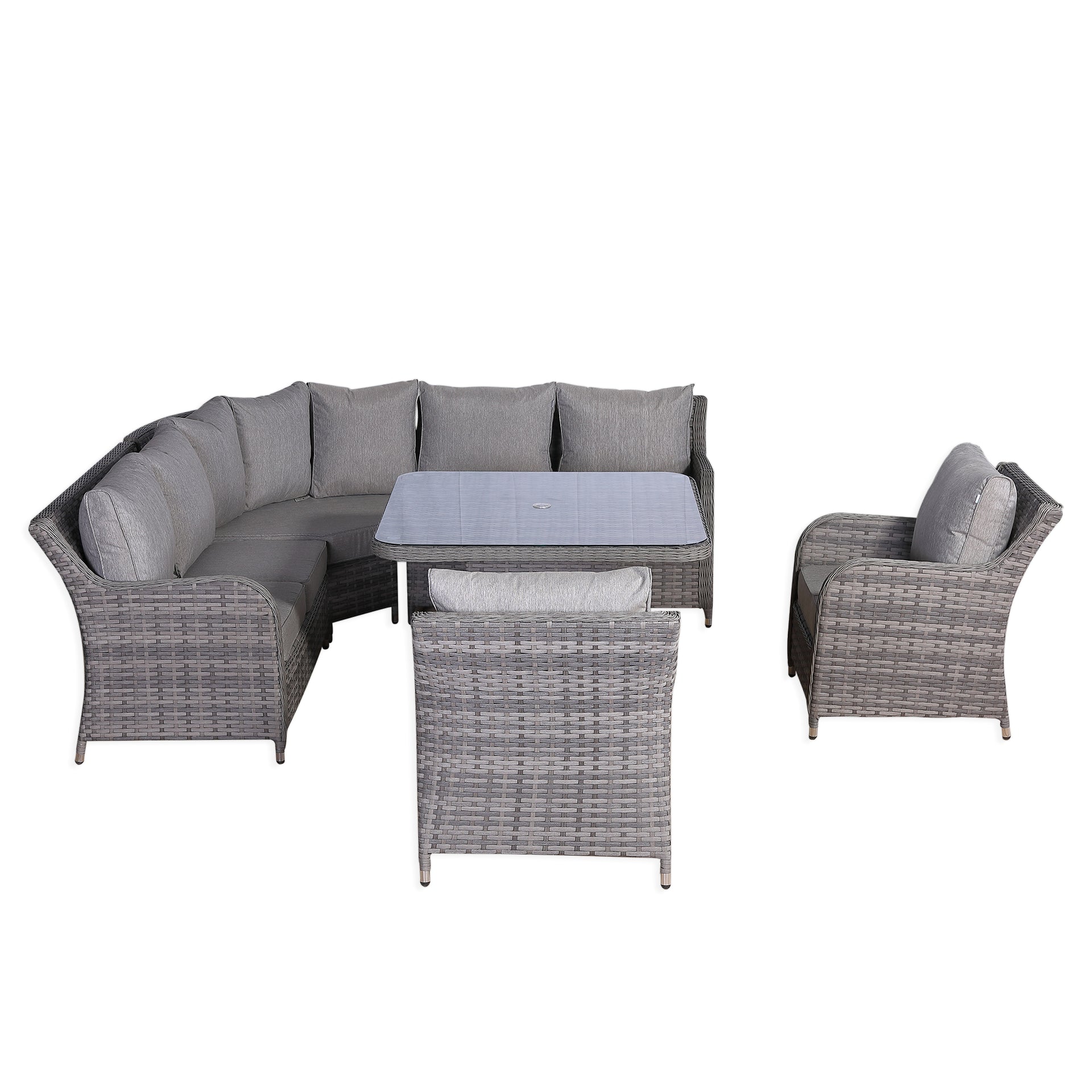 This gorgeous, classic style, Corner Sofa set sits 8 people comfortably and is made in our premium rattan that is UV Treated. The thick grey cushions with dark grey piping are premium quality and have machine washable covers. |
