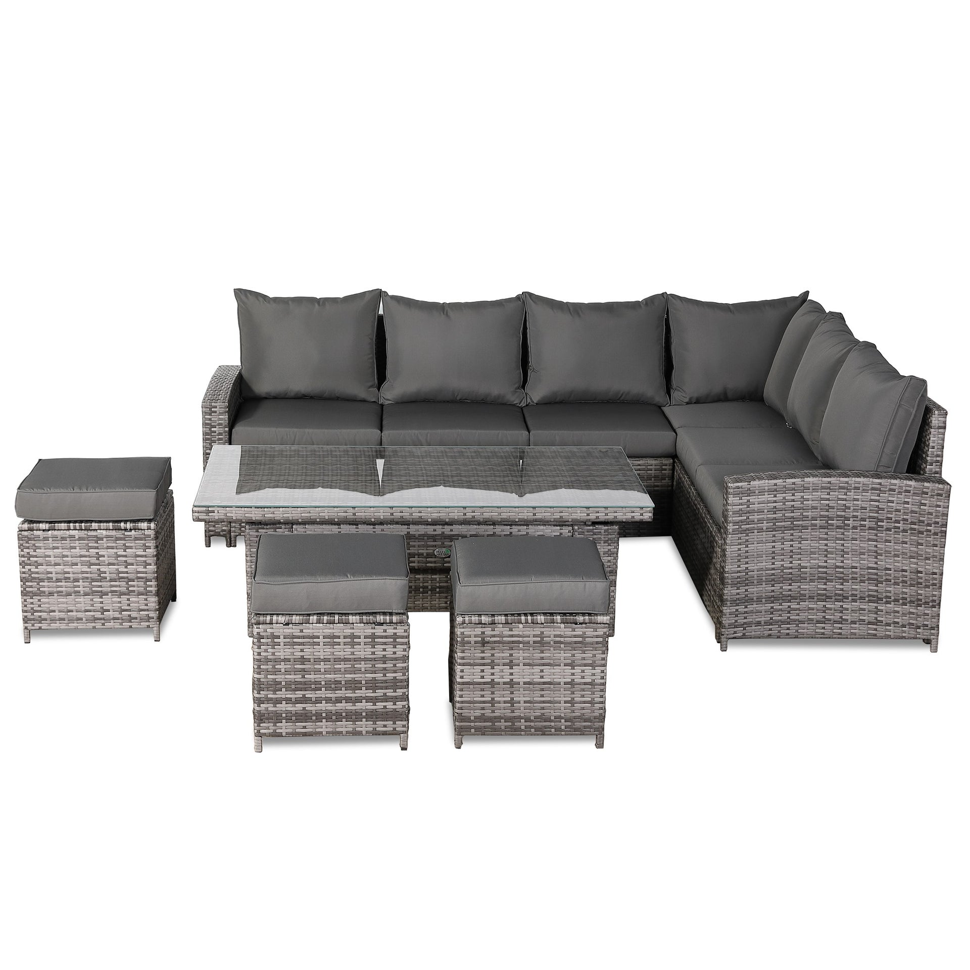 If you want to look glorious and feel fabulous this spring and summer then this Small corner is perfect for any Garden. It comes with a three seater sofa, a three seater corner sofa, three footstools and a Lift and Rise table. The curved weave and comfortable cushions provide great support for long periods making this an outdoor rattan set you should seriously consider adding to your home this year.