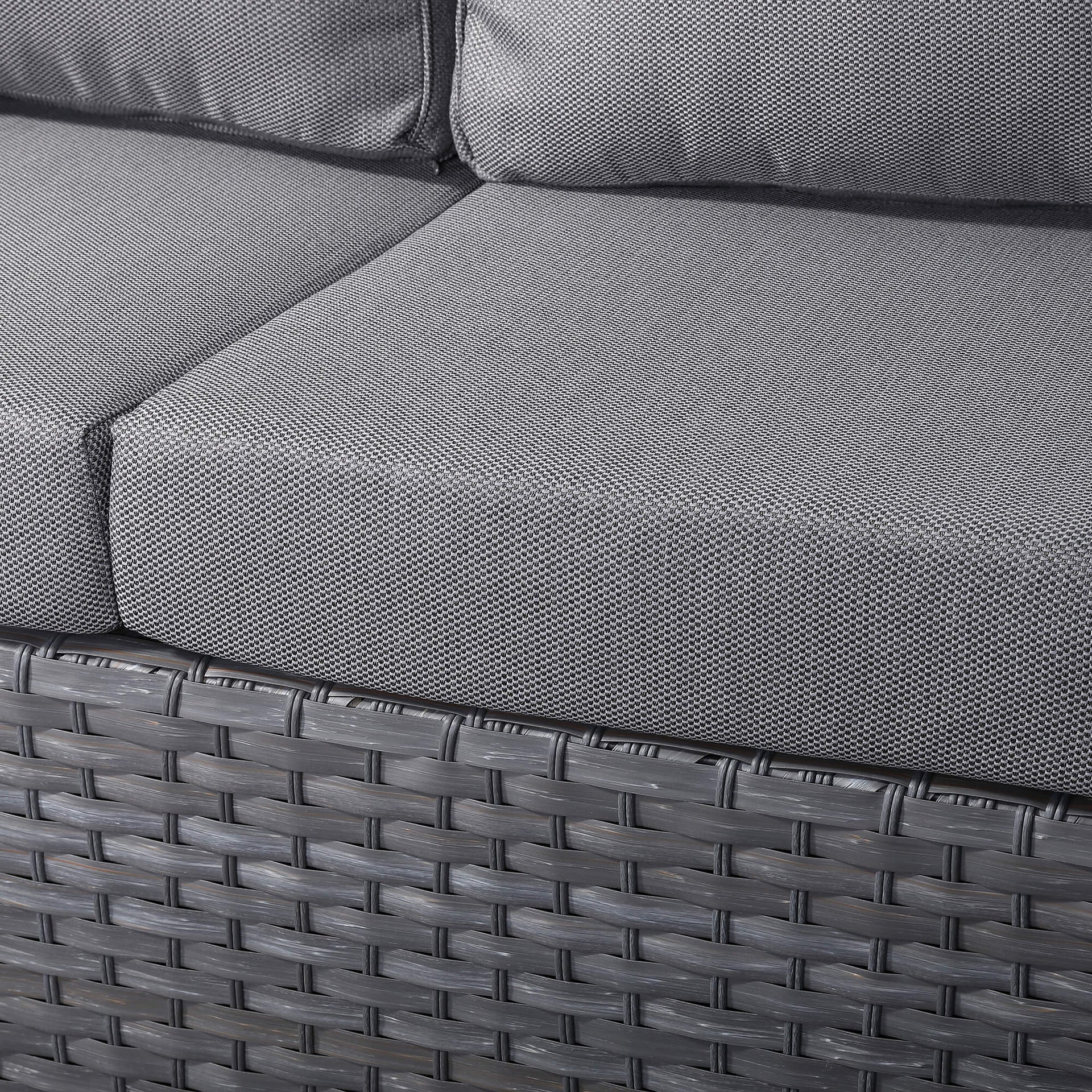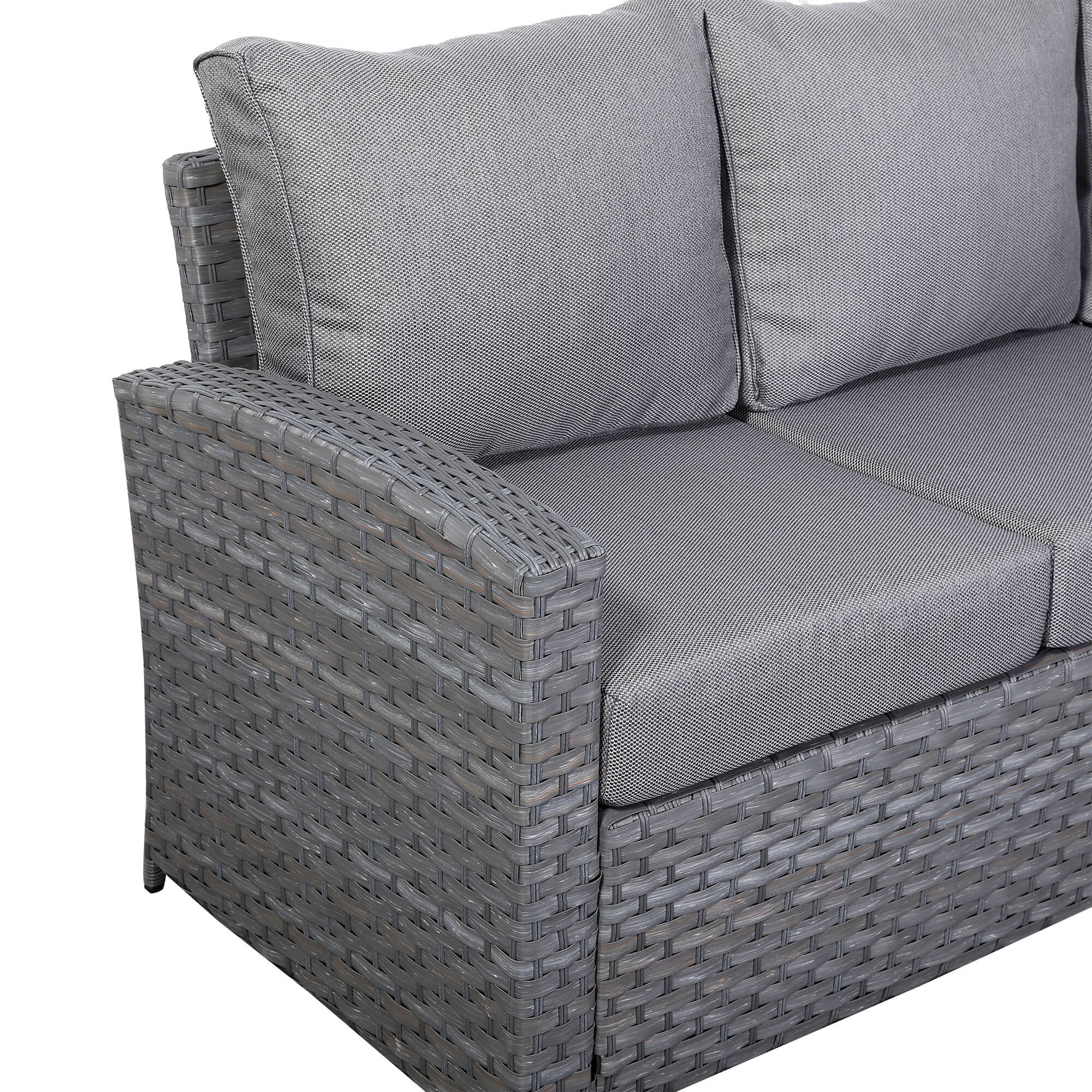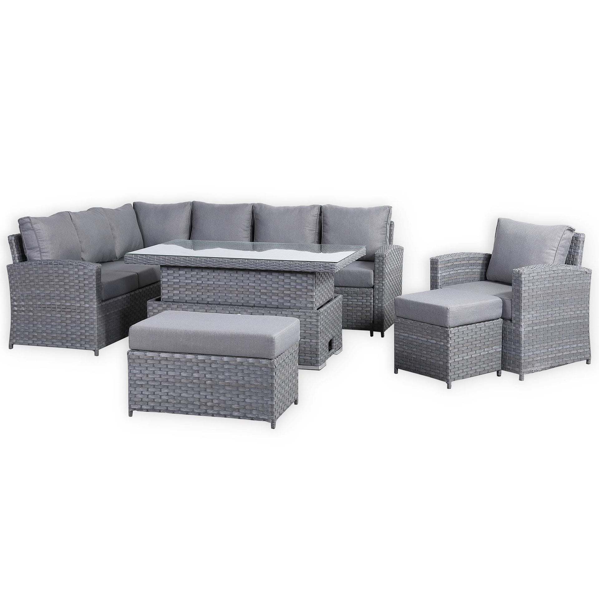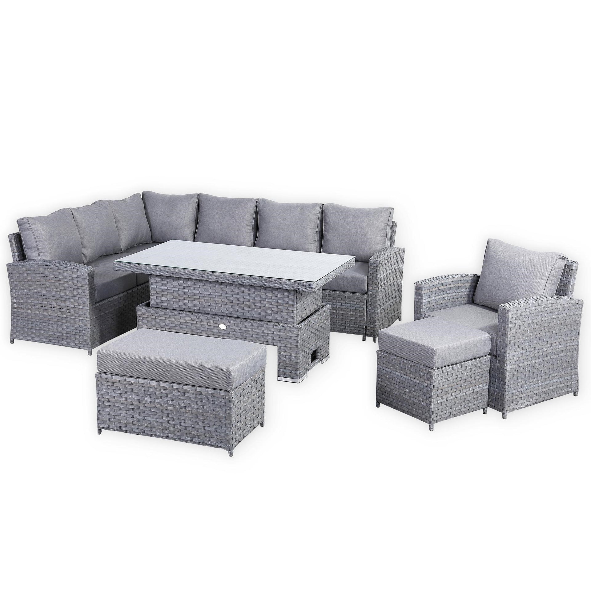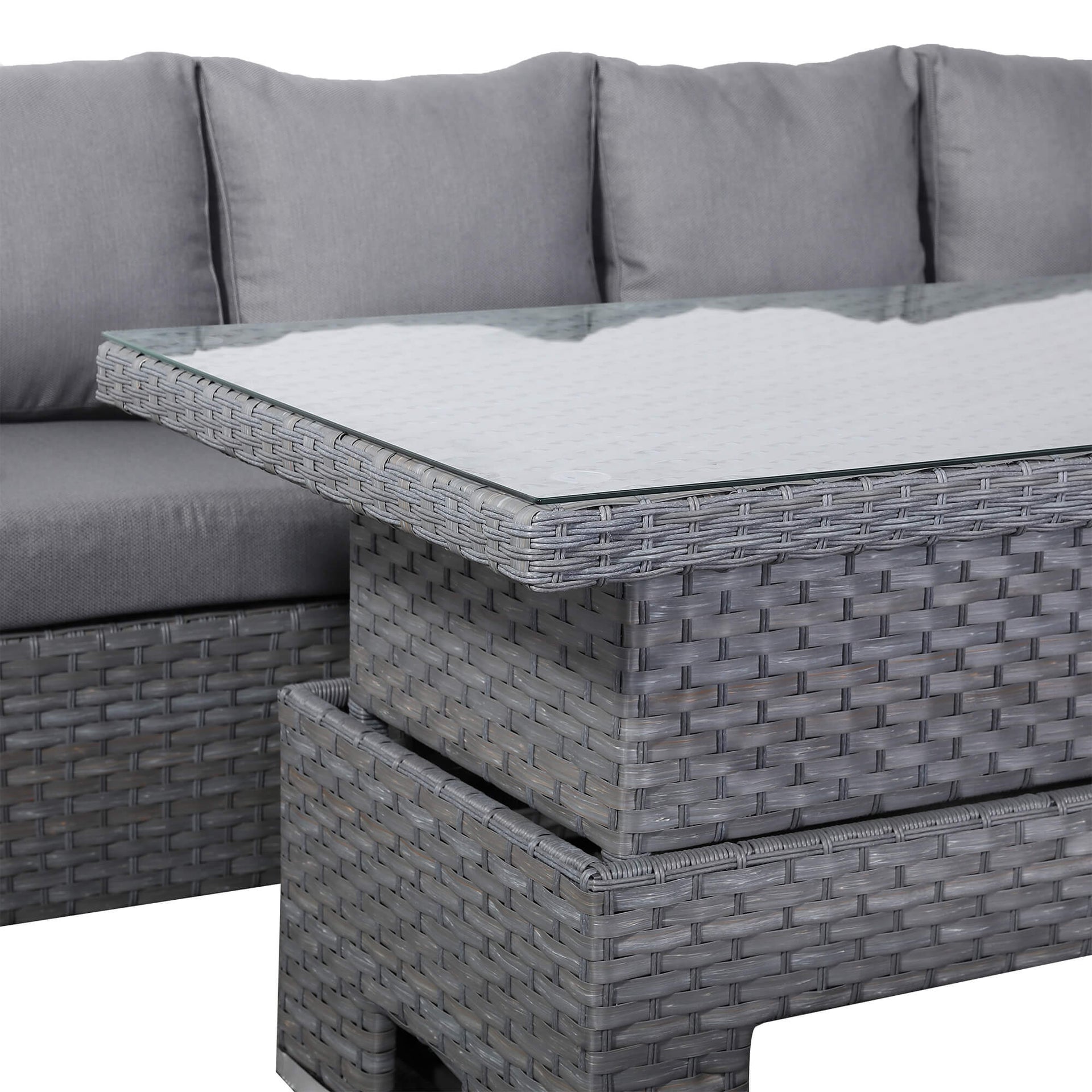 Isobella Range Elite Left Hand Corner Sofa Set with Rising Table and Arm Chair in Grey Rattan