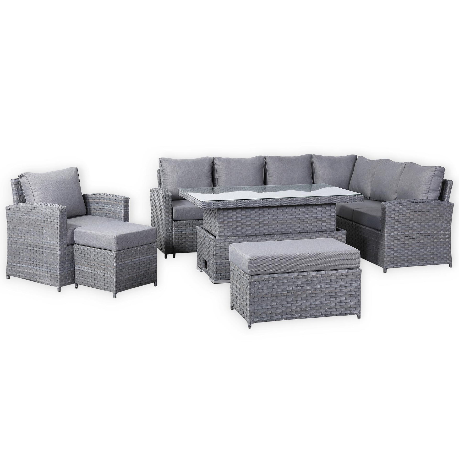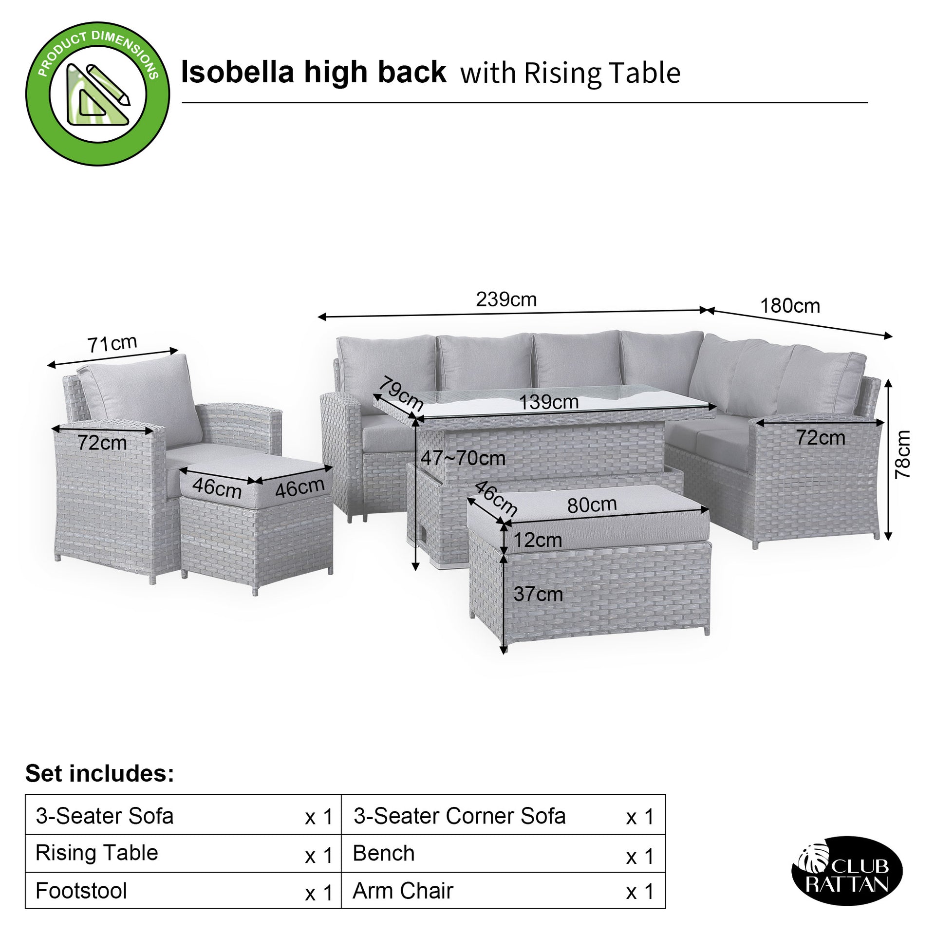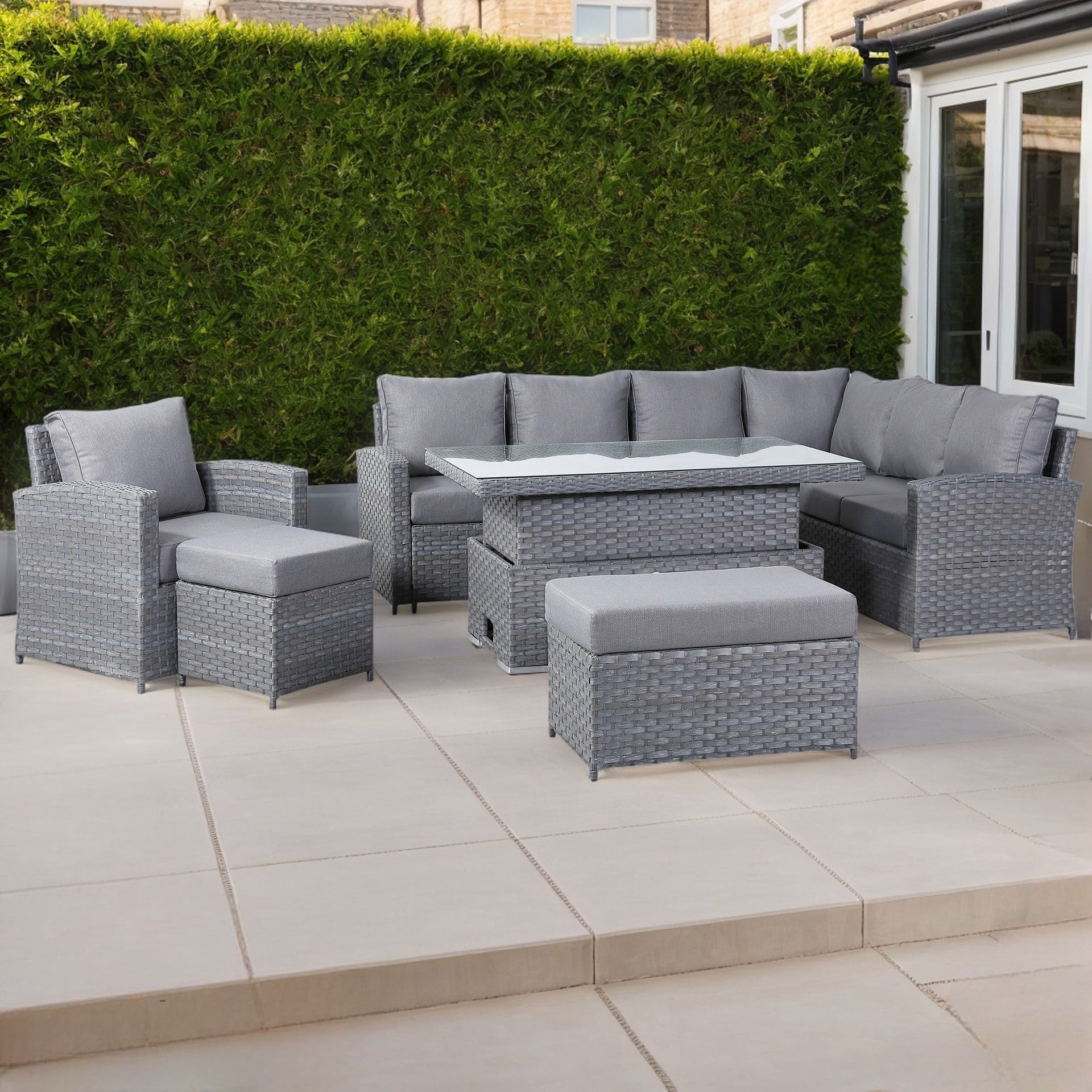 This classic saped sofa and dining set sits 10 people and has a comfortable high back, curved arm and elegant feet. It’s made in our Large grey rattan and is complete with super thick grey cushions for the utmost comfort. The sturdy table can be raised or lowered to create either a dining table or a coffee table and has a full weave underneath the tempered glass. Now sit down and enjoy... maybe with a little cheeky glass of something? With over two decades of experience, we’ve dedicated our time to not only sourcing the best materials but extensively developing our stylish models. |