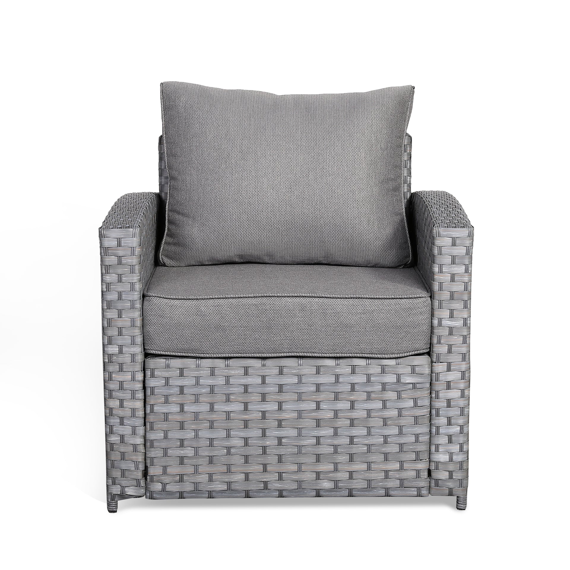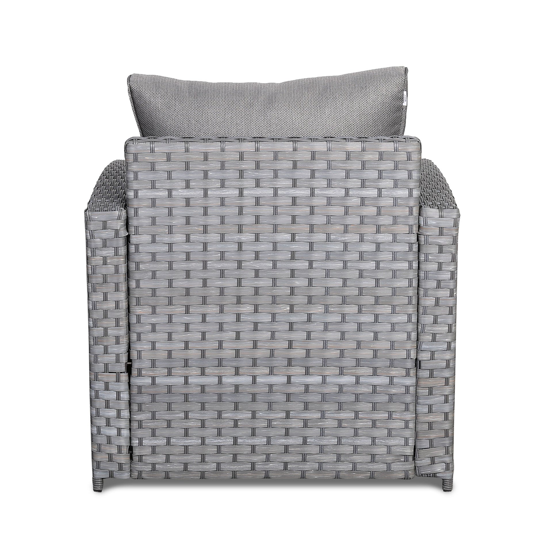 This stylish outdoor furniture set is an eye-catching addition to any garden or terrace. It’s made in our small grey rattan and comes with super thick grey cushions for ultimate comfort. With over two decades of experience, we’ve dedicated our time to not only sourcing the best materials but extensively developing our stylish models. Care for your Furniture. The Rattan Furniture is hand woven, so no two pieces are identically the same, so one section can vary from the other which has no impact on its durability. The Rattan may sag under the glass in hot condition direct sunlight The Staple fixing, screws and bolts & welds can develop a film of rust in damp conditions. The frames of our sets are coated for optical reasons. The coating is sometimes minimally damaged in the production process. This doesn't affect the quality or durability of the frame in any way.