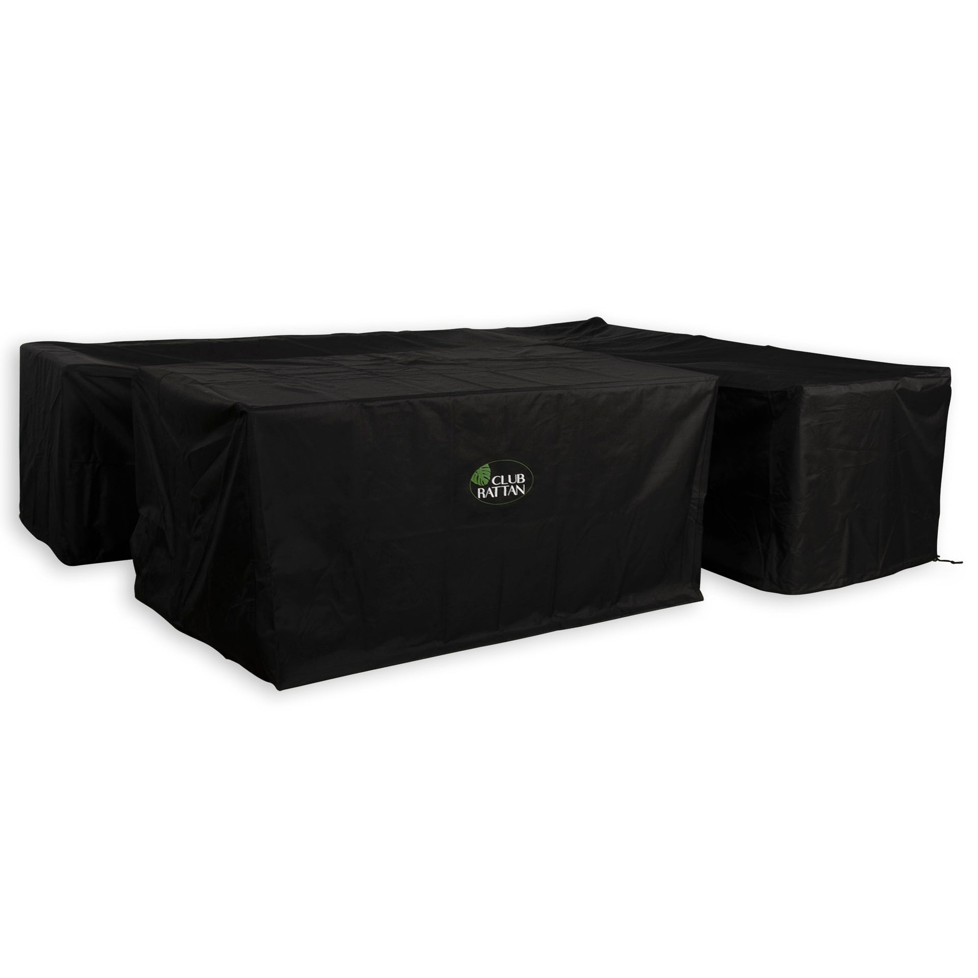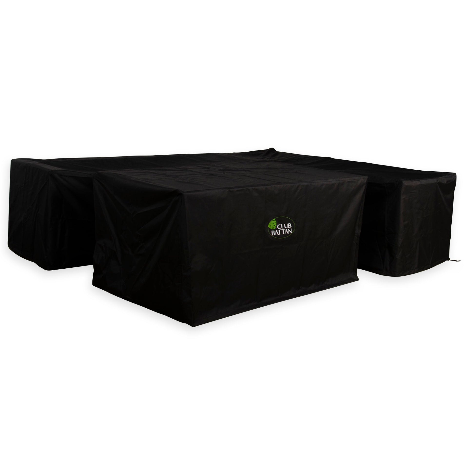 Each set comes with 2 covers to individually cover the corner sofa and the dining table. Over winter, the stools fit neatly on their side on each of the sofa sections underneath the covers.