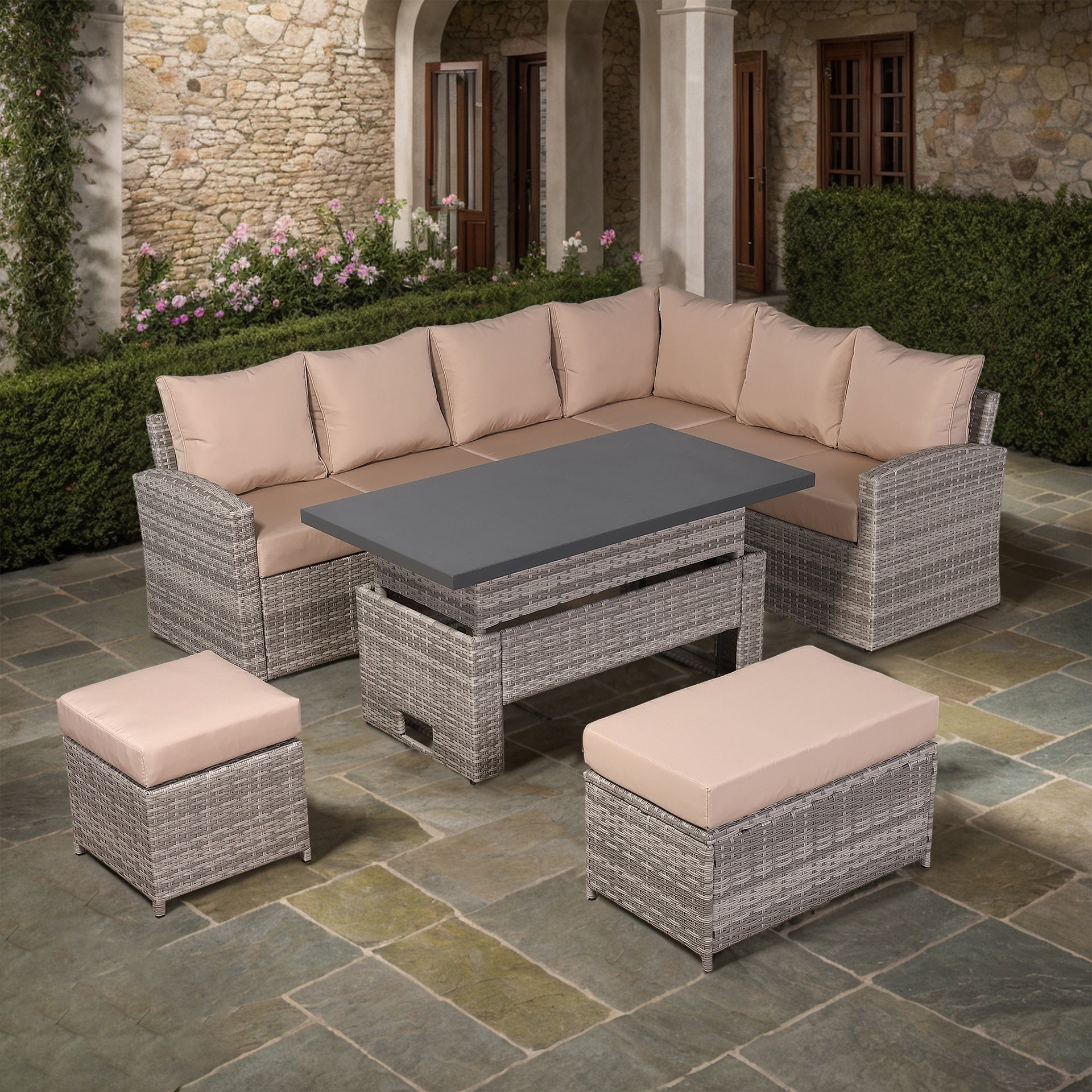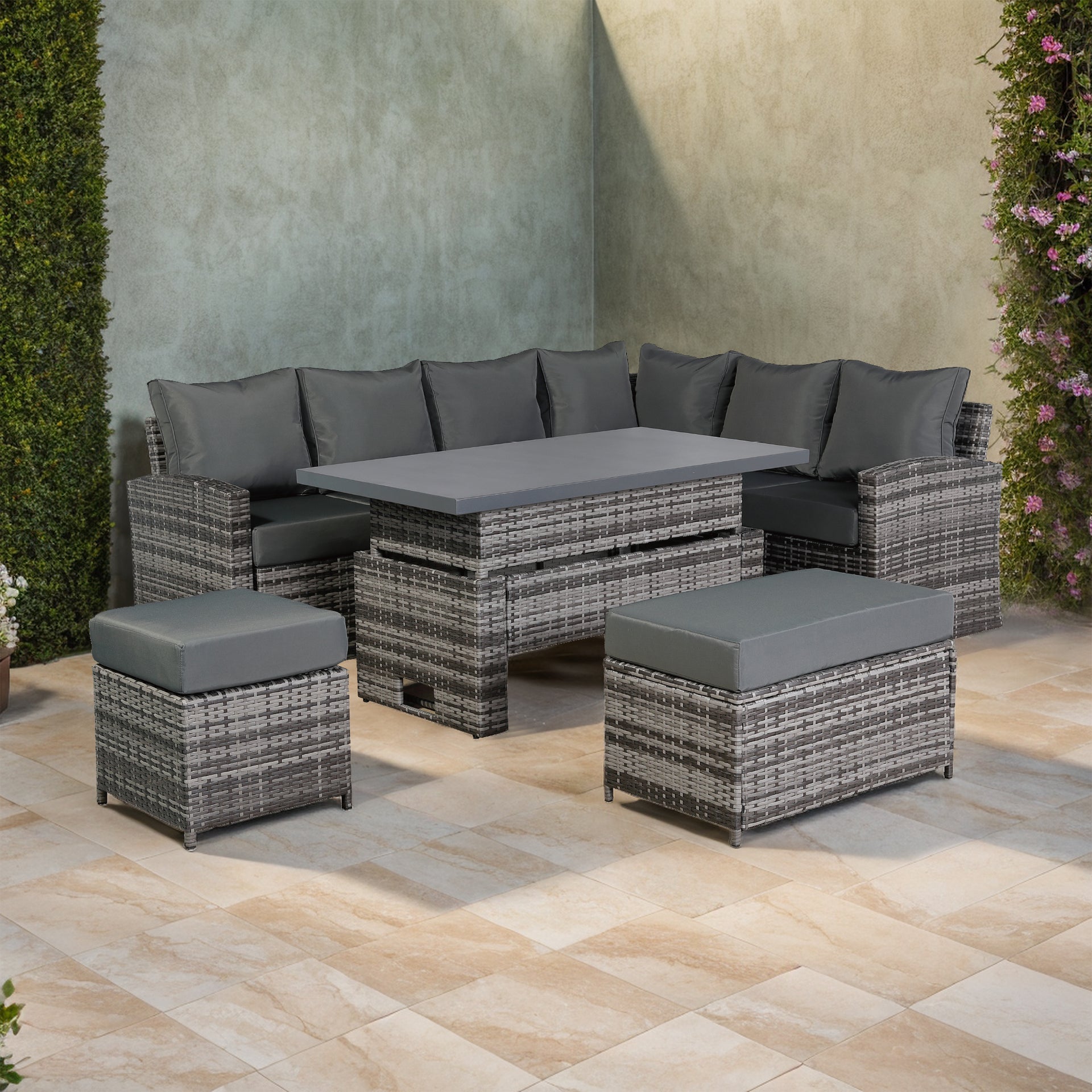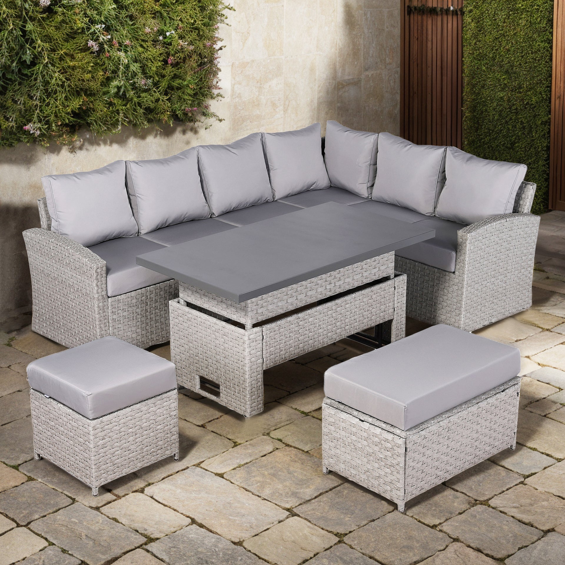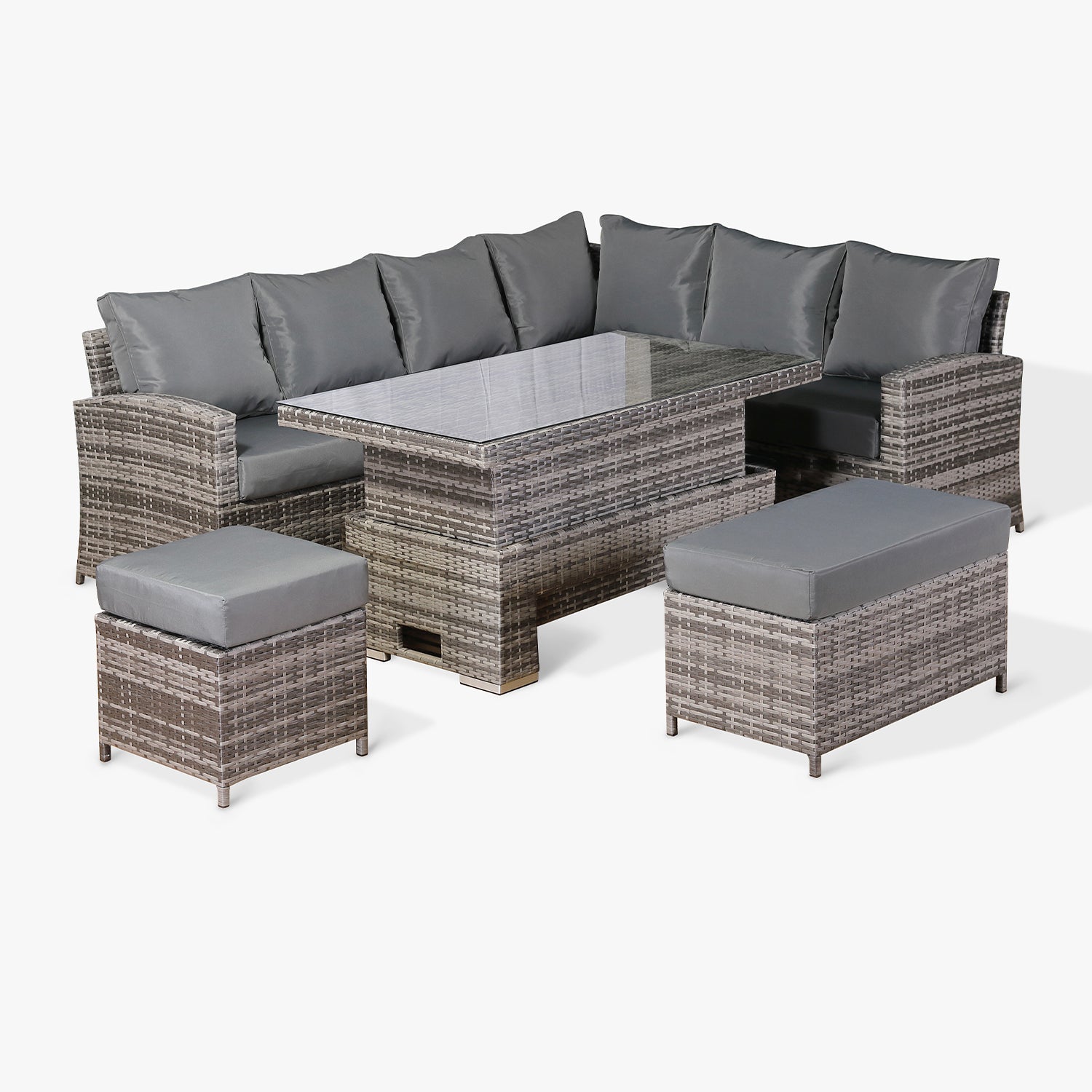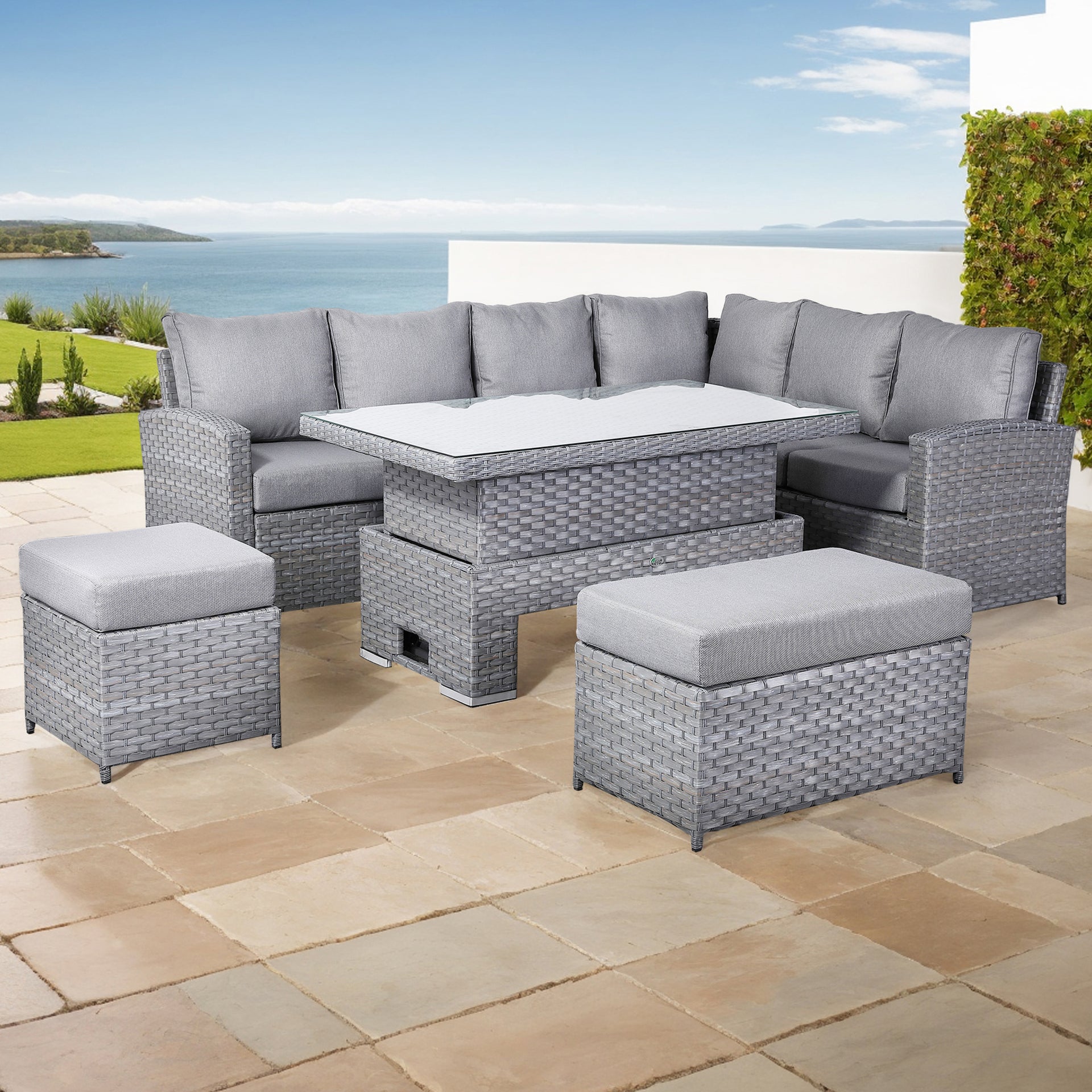 These fitted Protective covers will fit the Harmony /Isobella / Henley / Ashley Range High Back Corner Sofa with Rising Table. This is a great way to protect your cushions from summer showers.