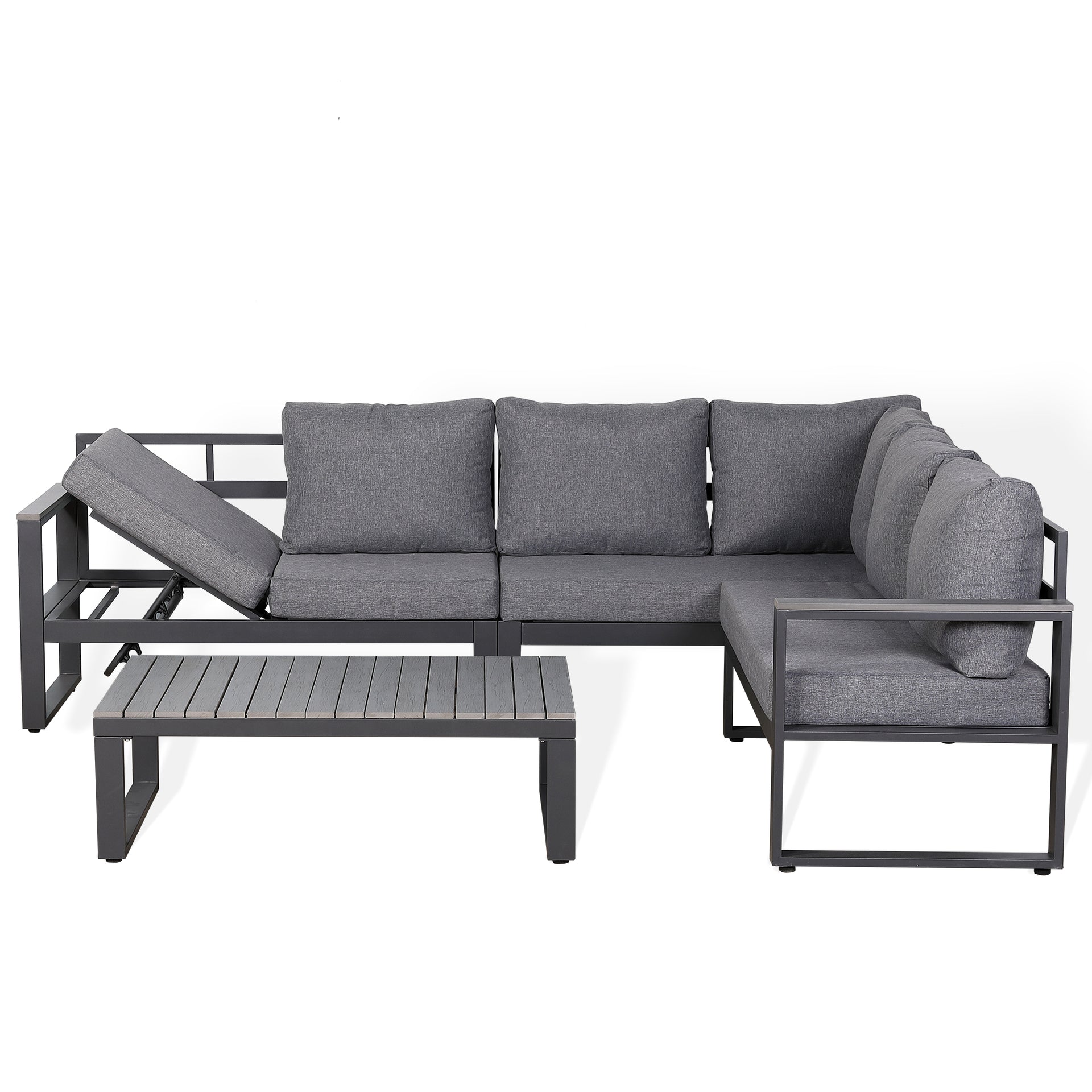 CLEARANCE...CK-03 Dune Range RHF Corner Set Charcoal Aluminium Frame With Grey Cushions